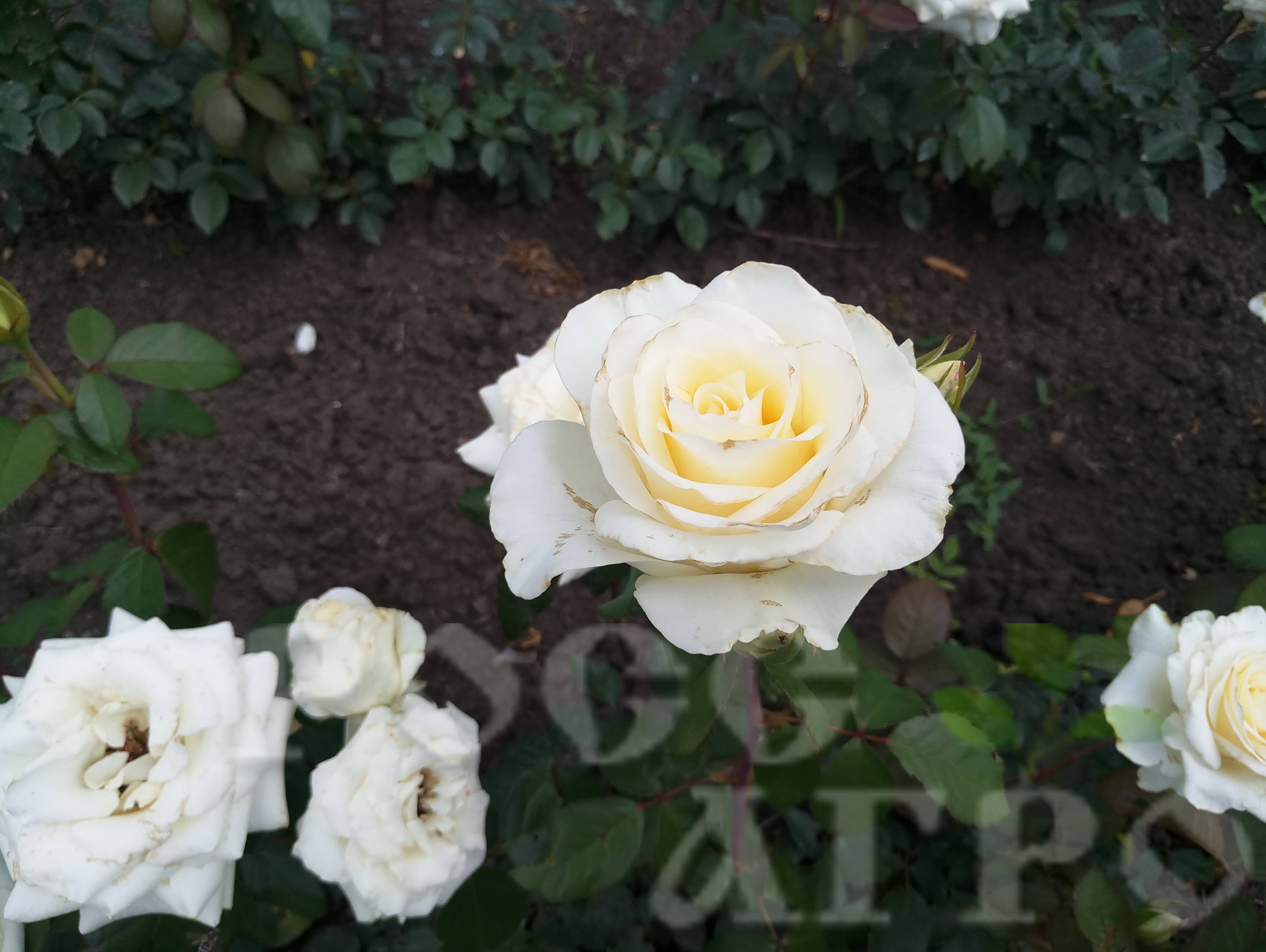 Диаметр цветка 10-12 см; высота куста 100-120 см;  цвет: нежно-белый;  цветение: повторное